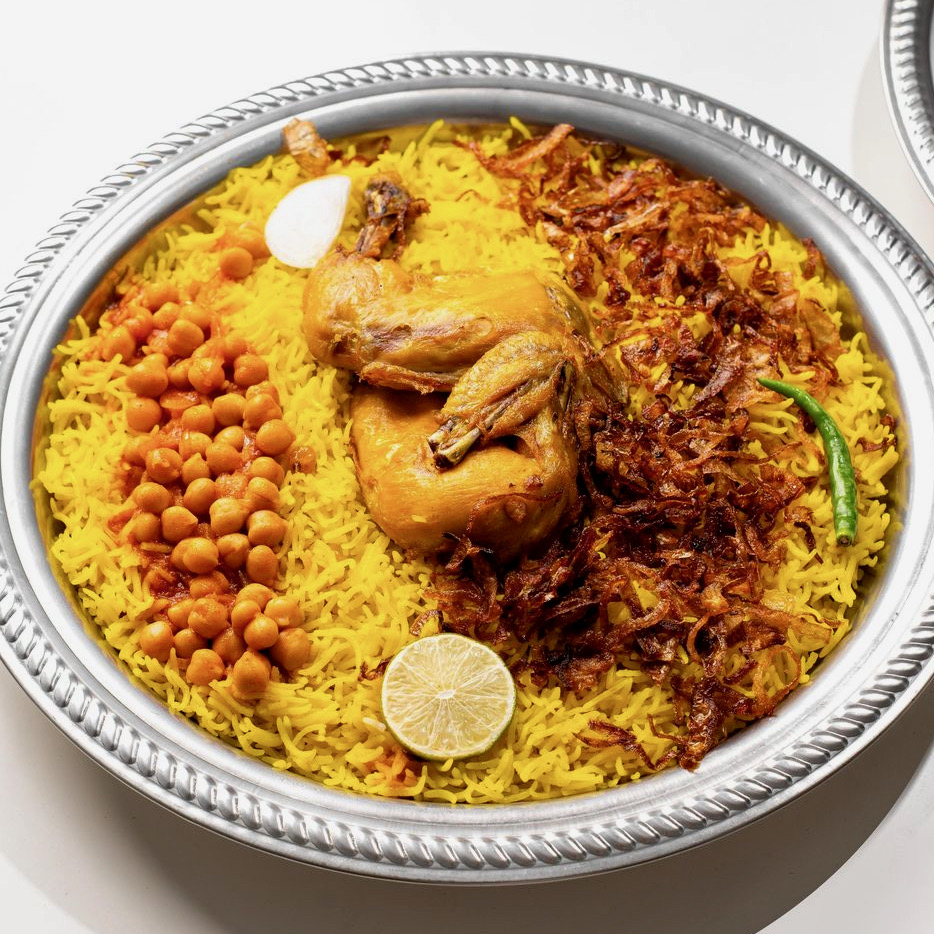 يتكوّن من أرز بسمتي مُنكّه بخليط التوابل العُماني الذي يضمّ توابل كاملة أو مطحونة مثل الهيل والكزبرة والقرنفل والقرفة.