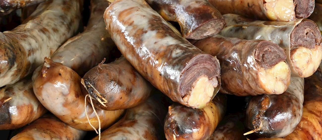 - ٥. نجفف الأمعاء ونحشوها باللحم المتبل بإحكام.